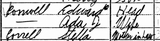 Edward Conwell listed with wife, Ada J., and mother-in-law, Stella Correll